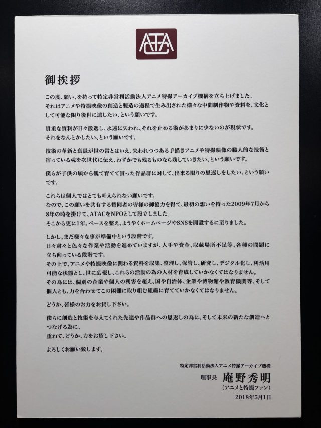 認定NPO法人「アニメ特撮アーカイブ機構(ATAC)」の