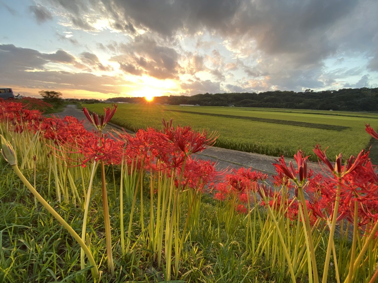 九月最後の日曜日に菊鹿の番所地区で彼岸花の撮影した帰りに 益城町の寺中地区の彼岸花の通学路に立ち寄り 彼岸花の撮影をしつつ夕陽迄待ってました‼︎