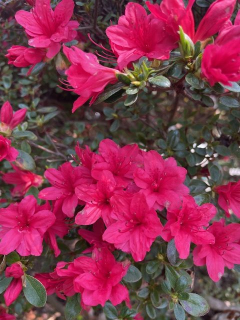 庭にツツジ もう咲きだしたんですよ まだ桜は満開にもなってないのに 私も見てと言わんばかりに咲いてます 真っ赤なツツジ 庭がパッと明るくなりました
