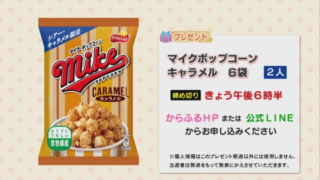 ★『マイクポップコーンキャラメル6袋』を2人にプレゼント!★