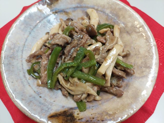 ③炒鍋にサラダ油大1を熱し、②のきのことピーマンを炒めて一度取り出します。