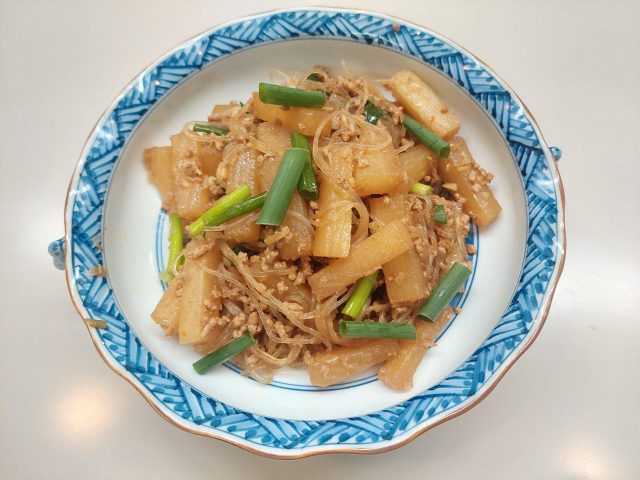 ①大根は4cm位長さの拍子切りにし、熱湯でサッと茹でて、水気を切ります。