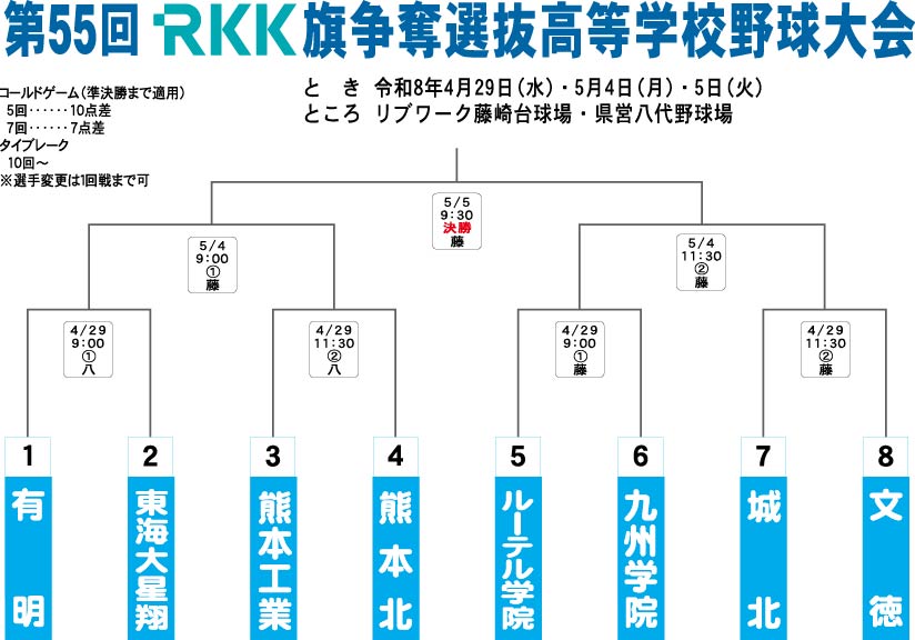 第55回 RKK旗争奪選抜高校野球大会は4/29開幕です。