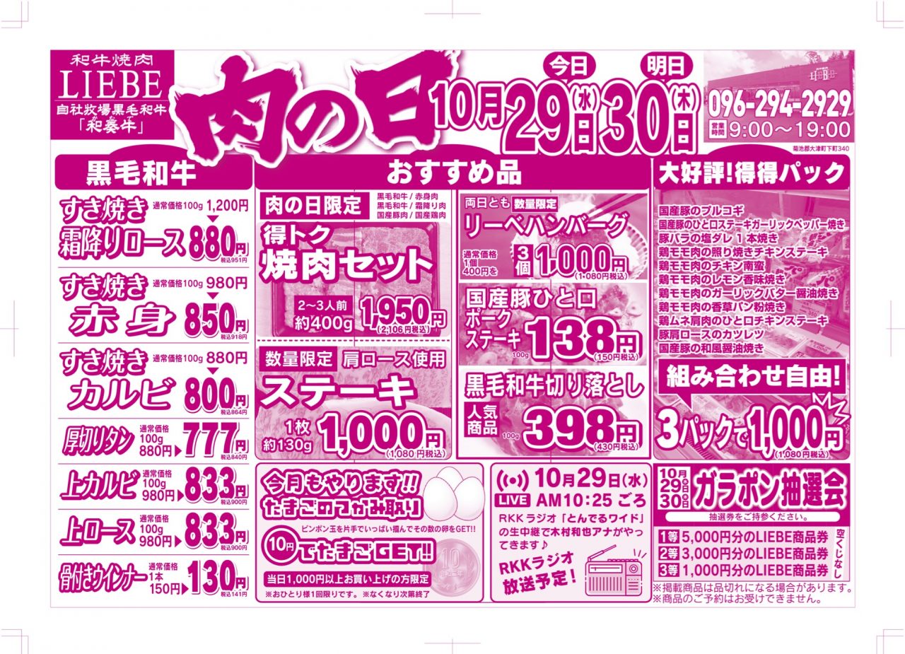 こちらでは本日10月29日(肉の日)~31日までの3日間『肉まつり』を開催しています!