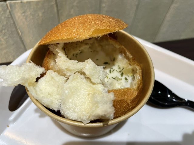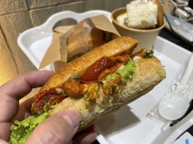フランスパンサンドとスープなのですが販売開始前に特別に頂きました♪