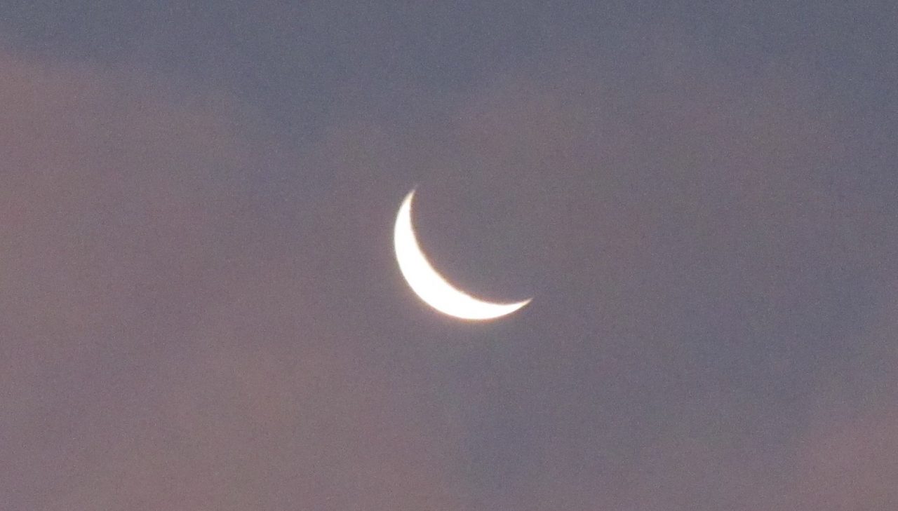明け方の空に浮かんだ細い月🌙冷たい感じも…