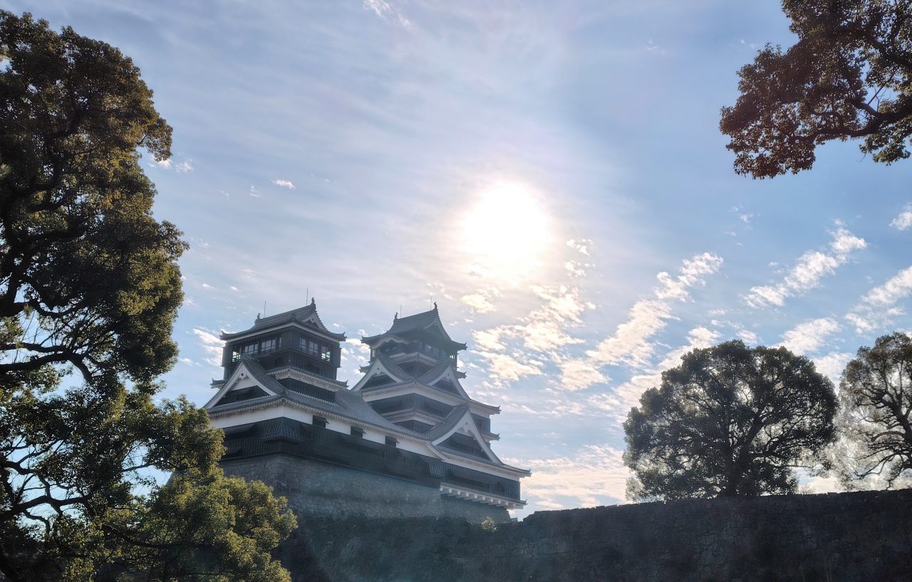 初詣に行った加藤神社から見た熊本城。