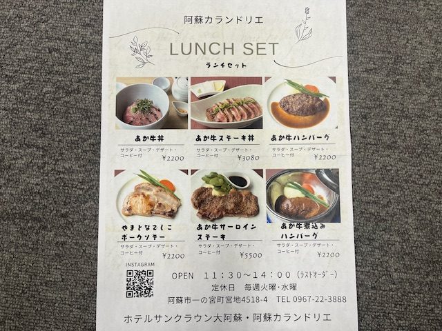 今年4年目になる阿蘇カランドリエは阿蘇市一の宮町宮地にあるホテルサンクラウン大阿蘇の中にあるレストランです。